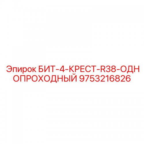 Однопроходный крестовый бит 9753216826 БИТ-4-КРЕСТ-R38 от Epiroc предназначен для скоростного бурения взрывных скважин диаметром 89-102 мм. Оснащен четырьмя взаимопересекающимися резцами из карбида вольфрама с нанопокрытием. Резьба R38 обеспечивает надежное соединение с буровыми штангами. Особенности: центрирующий наконечник, спиральные каналы охлаждения, система защиты от сдвига резцов. Совместим с перфораторами Epiroc COP 1838 и 2238. Рекомендован для открытых горных работ и строительства. Обеспечивает полное разрушение забоя за один проход, увеличивает производительность на 45% по сравнению со стандартными битами. Рабочий ресурс: 1200 погонных метров в граните. Ударопрочность: 45 Дж. Поставляется с паспортом и руководством по эксплуатации.БИТ-4-КРЕСТ-R38-ОДНОПРОХОДНЫЙ Epiroc (9753216826)